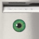 Olho Verde Íris © Sunny Mars Designs. Imprimido, legal, e personalizado, de novidade ocular verde ou ímã refrigerador com uma imagem gráfica elegante, moderna, bela, única, assustadora, estranha e retorcida de uma grande íris verde realista de globo ocular de um olho. Outros designs de globo ocular coloridos também estão disponíveis em armazenamento.