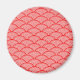 Design apresenta uma ilustração vermelha de um padrão de onda no estilo da arte tradicional japonesa.