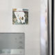 Um cachorro bonito procurando por pedaços faz um design de ímã divertido.