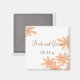 Personalize os bonito Orange Daisies no White Wedding Square Magnet com os nomes pessoais da noiva e do noivo e a data específica da cerimônia de casamento. Crie o seu partido personalizado a favor, guarde o presente ou salve o anúncio da data. Este elegante e personalizado ímã de casamento florescente mostra margaridas laranja adorando os cantos com um fundo branco.