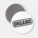 "Orgânico" desenhado em uma fonte angustiada em negrito em um retângulo arredondado encurralado, design é inclinado em um ângulo para dar a ele um tipo de impressão manual, ou como um design pode ser encontrado em um saco, então certamente parece a peça.
