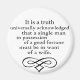 Um design de Orgulho e Preconceito que apresenta a primeira linha do romance mais famoso de Jane Austen, a história de Eliza Bennet e do Sr. Darcy.