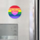 Íman orgulho gay arco-íris, com um design cardíaco colorido e um texto personalizável branco. Excelente por mostrar seu apoio à comunidade LGBTQ e encorajar todos a votar nas eleições de 2024.