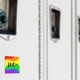 Este trabalho de arte apresenta o estado do Texas formado por um arco-íris colorido.