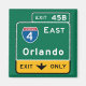 Um sinal original da autoestrada americana da cidade de Orlando, Flórida.