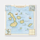 Este mapa falso-antigo das Ilhas Galápagos é decorado com minúsculos navios à vela no estilo do Marinho britânico durante as Guerras Napoleônicas ou a Era Vitoriana e uma fronteira contendo desenhos da vida selvagem nativa.