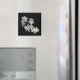 Um spray de orquídeas brancas e roxas contra fundo preto. Personalize este ímã para a sua ocasião especial!