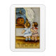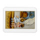 Vintage Halloween ilustrando um cartão de saudação mostrando uma criança olhando para um jack o'lantern na janela.