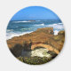 Uma visão clara de Otter Rock à distância no Parque Estadual do Punchbowl, Newport, Oregon. Um dia tempestuoso na costa abriu caminho para o céu limpo e o sol quente, com ondas pesadas a cair nas rochas. Foto: outubro de 2021.