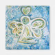 A pintura é de um anjo branco e dourado com sotaques verdes cercados por céu azul girando e corações ouros. Os anjos têm um coração branco em vez de um halo acima da cabeça do anjo.