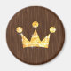 Ilustração de uma coroa ouro sobre um fundo de madeira escura.