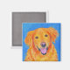 Este ímã apresenta um ouro de recuperação feliz. Eu criei o retrato original em aquarela, tinta e lápis colorido em papel aquarela.