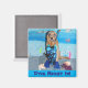 Este ímã apresenta um recuperador de ouros vestido como um snorkeler no oceano. A mensagem diz: "Mergulhe Diretamente!".