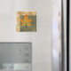 Íman quadrado com a imagem de uma folha de bordo verde, laranja e amarela em verde e marrom colchado. Veja a coleção inteira do Magnet de Ação de Graças na categoria HOME na seção HOLIDAYS.