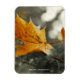 Folha de bordo laranja na floresta de outono, efeito colorido.
