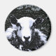 Um design de arte digital preto-e-branco de uma ovelha abrigando-se da neve. Wales. com