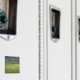 Imagem fotográfica com algumas ovelhas na relva verde em frente a três moinhos de vento sob um céu escuro com nuvens de chuva pouco antes de uma tempestade de primavera numa paisagem em Leidschendam, Países Baixos.