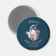 Íman personalizado para um chá de fraldas ou outro evento. Projetado com uma ilustração de uma aquarela fofa de um ovo sentado dentro de um cesto de vime. Decorados com fitas, arcos, flores e pequenos corações também. Um flamingo cor-de-rosa e coelho branco ficam de lado a lado a observar a carga do precioso.