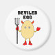 O texto 'Ovo Recheado' com uma cabeça de ovo com chifres segurando um forcado é uma brincadeira divertida com o nome de um prato de ovo favorito.
