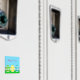 Design bonita e fofa de ovos de Páscoa verde, azul e amarelo, multiculados, decorados, contra fundo azul em pó, que lembra um céu Primavera azul claro.