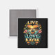 A serene heart-shaped lakeside scene celebrates the love of kayaking amid mountains, flowers, and golden sunset skies.