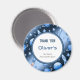 Este ímã apresenta um design cósmico azul cativante com foguetes, planetas e estrelas pintados à mão num estilo de aquarela macia. As tonalidades luminosas de marinho, azul-céu e branco-nítido criam um ambiente fora deste mundo. Perfeito como um obrigado a favor das comemorações de aniversário de crianças, este design pode ser personalizado com um nome ou detalhes de evento para adicionar um toque exclusivo à decoração do seu partido.