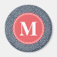 Um padrão-chave grego moderno, moderno e moderno, em azul marinho e branco, com um círculo cor-de-rosa de melancia que apresenta um modelo inicial de letra monograma.