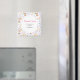 Um ímã de favor com um padrão fofo e caprichoso. Balões de ar quente e nuvens bonitas com rostos entre estrelas e corações e balões. As cores pastéis moles constituem este adorável design. Um quadrado branco em camadas acima com seu dentro de texto.