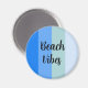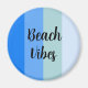 Legal padrão azul e verde claro de listras e um texto personalizável dizendo: "Vibes de praia". Ajustado um estilo marinho alegre.