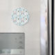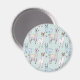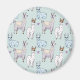Um ímã com um padrão fofo com lhamas brancas. Um está deitado, um está segurando uma flor na boca dele, e um está olhando para você desconfiadamente. Estes animais têm um grande caráter encantador. Colocado sobre um fundo de bolinhas verde.