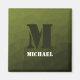 Monograma Personalize com seu nome e inicial personalizados. O padrão geométrico do gradiente verde do exército triangular. Malha geométrica triangular com gradiente verde-mbre de cinza escura.