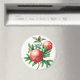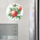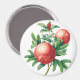 Fruta vermelha pomegranada com padrão de folhas verdes no fundo branco