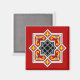 Decorra a geladeira com este íman quadrado legal com um design tradicional de azulejo de Barcelona. O fundo é vermelho. Azulejo de Barcelona, Espanha. Um padrão tradicional do final do século XIX e início do século XX. Muito colorida, octogonal e geométrica, ideal para mercadoria. Sonho com a região da Catalunha e um pouco com o Mediterrâneo. Barcelona é uma cidade espanhola e, entre muitas coisas, conheceu pelos seus coloridos azulejos de cimento. Estes azulejos formam padrões, às vezes geométricos, em pisos e paredes. Os azulejos são populares porque dão um olhar tão mediterrânico e sentem-se na vossa casa. Como se estivesse na Espanha. Os azulejos de cimento não são cozidos num forno, mas são uma versão do cimento Portland. A primeira camada aplicada é o padrão de cor e a segunda, mais espessa, é a camada de cimento da cinza. Então eles são pressionados juntos. A camada superior de padrão é fundida com a camada inferior de cimento. Este tipo de azulejo é muito durável.
