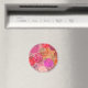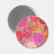 Padrão floral multicamadas com flores coloridas e ramos em fundo rosa