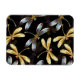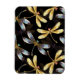 Padrão sem costura com ouro, joias, libélulas brilhantes com asas brilhantes e detalhadas sobre fundo preto. Dourada libélula.