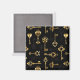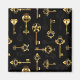 Padrão perfeito de chaves antigas, douradas e silhuetas em fundo preto.