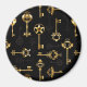 Padrão perfeito de chaves antigas, douradas e silhuetas em fundo preto.
