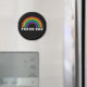 Esta trabalho de arte apresenta um arco-íris com a frase Pai Orgulhoso.