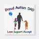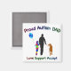 Orgulhoso Pai Autismo e seu filho andando com seu cão em quebra-cabeça Autismo, e "Acreditem no Apoio ao Amor" para apoiar o Pai Autismo e seu filho.