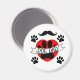 Uma pata de cachorro imprime em um coração vermelho com texto em fita. Design original com patas e bigode. Uma ideia de presente para os homens.