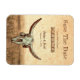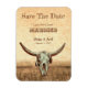 Rustic Western country vintage antigo estilo cowboy. O casamento de impressão de textura de madeira bege castanho divertida salva os ímãs retangulares da data. Convites de crânio de vaca. Usem um pouco de humor com esta design engraçada e engraçada. Velho oeste selvagem, único. animal legal, único, fazenda de moda. Personalize seu script. Imagem copyright Marg Seregelyi Fotografia.