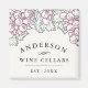 Um presente único e ponderado para amantes do vinho, este ímã personalizado com tema do vinho apresenta um porto de uva e folhas de uva em estilo rústico vintage gravado. Personalize com seu nome familiar, "adegas" e ano estabelecido.