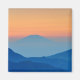 Uma abstrato de criação de uma paisagem enevoada do pôr do sol de montanha criando um efeito de ressonância sonhador. As colinas e vales são cor azul profunda com uma montanha central de aparência nebulosa grande no fundo. O céu está cheio de uma atmosfera turva e nebulosa cor de laranja. O processamento feito a esta foto da noite dá a ela uma sensação artística, pintada de sonho.
