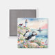 "pássaros puffin", "pufinas negras e brancas", "farol vermelho", "ilustração de pintura de aquarela", "paisagem marinha marinha", "ave bonitinha da costa marinha", "lindos animais pintados", "flores florais pastel florais", "verão primavera brilhante colorido", "vida selvagem de verão"