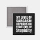 Se você gosta de citações sarcásticas engraçadas ou designs humorísticos excelentes, este slogan original " Meu nível de sarcasmo depende do seu nível de estupidez" é para você. É um excelente presente para sua família, amigos ou para você mesmo! Esta design é ideal para quem ama sarcasmo e humor. Se você gosta dessa citação engraçada, veja trabalhos de arte mais parecidos na loja de omitay. Fique seguro e obrigado você por apoiar um artista local.