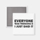 Se você gosta de citações sarcásticas engraçadas ou designs humorísticos excelentes, este slogan original" todo mundo estava pensando que eu acabei de dizer" é para você. É um excelente presente para sua família, amigos ou para você mesmo! Esta design é ideal para quem ama sarcasmo e humor. Se você gosta dessa citação engraçada, veja trabalhos de arte mais parecidos na loja de omitay. Fique seguro e obrigado você por apoiar um artista local.