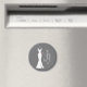 Íman de design de moda feito com um fundo de cinza clássico. Uma ilustração gráfica de um elegante vestido branco pendurado num cabide. Design minimalista simples.