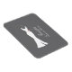 Magnet feito com uma cinza de fundo. Uma ilustração gráfica de um elegante vestido branco pendurado num cabide. Design minimalista simples.