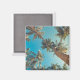 Esta foto mostra uma foto para cima de palmeiras contra um céu azul.