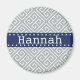 Um padrão chave grego moderno, modesto, mocinho, em cinza clara com um banner de modelo com pontos em azul escuro onde você pode personalizar seu nome.
